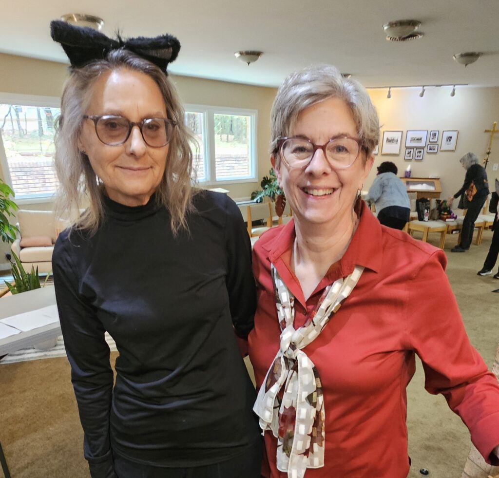 Ellen Ritchey and Susan Garrett saying hi to the kitties