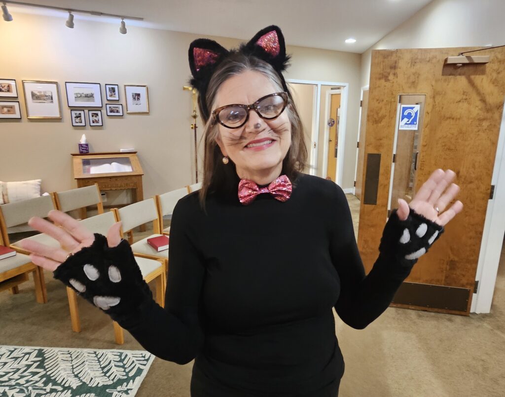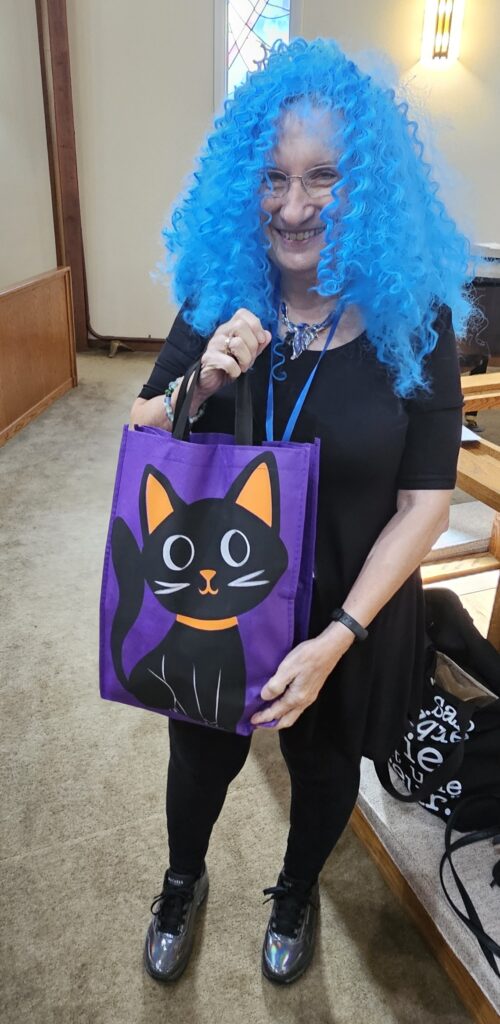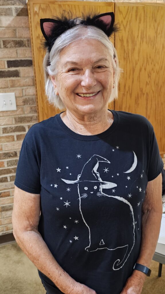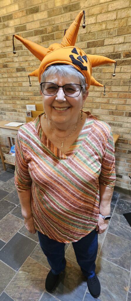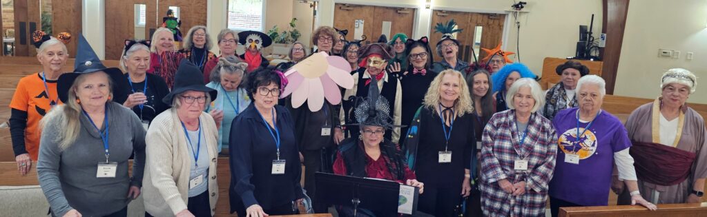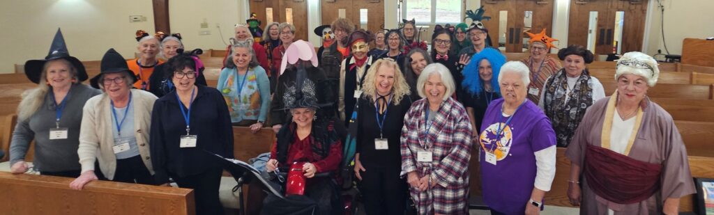 Thursday, October 30, 2025 was a SPOOKY day of singing! We had a great time celebrating the season: anyone who came dressed either for Halloween or for autumn was entered in the drawing for the door prize. Janet Rodekohr was the lucky winner of four really cute Halloween-themed dessert plates.